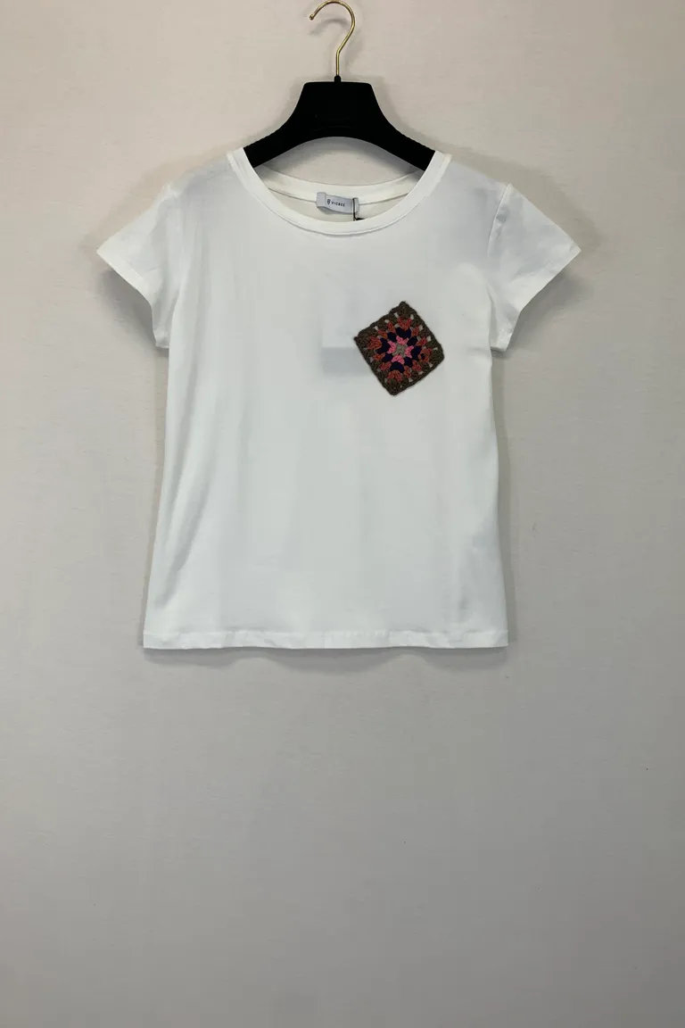 Description T-shirt con motivo all’uncinetto, ogni pezzo è unico e i colori possono variare leggermente