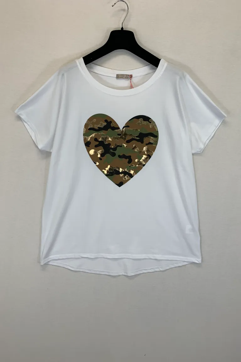 T-shirt over con stampa cuore fantasia camouflage