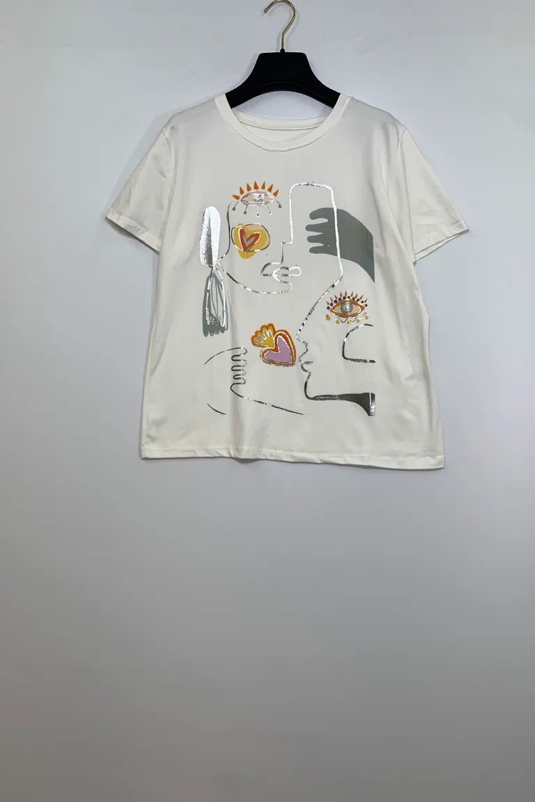 T-shirt con stampa volti astratti