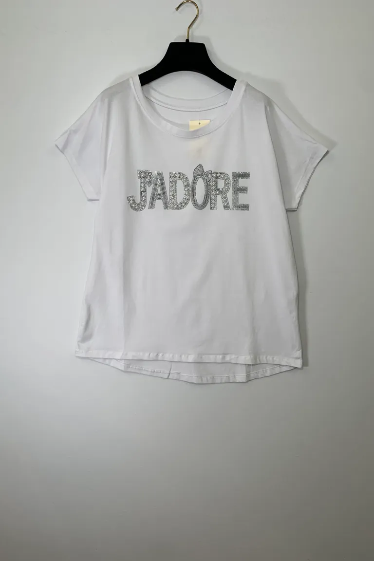 T-Shirt over “j’adore” con perle