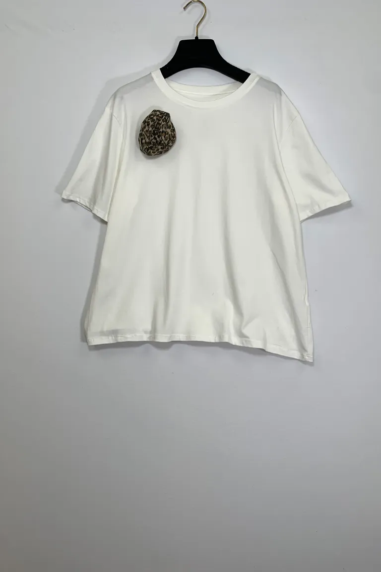 T-shirt con fiore maculato in tessuto applicato