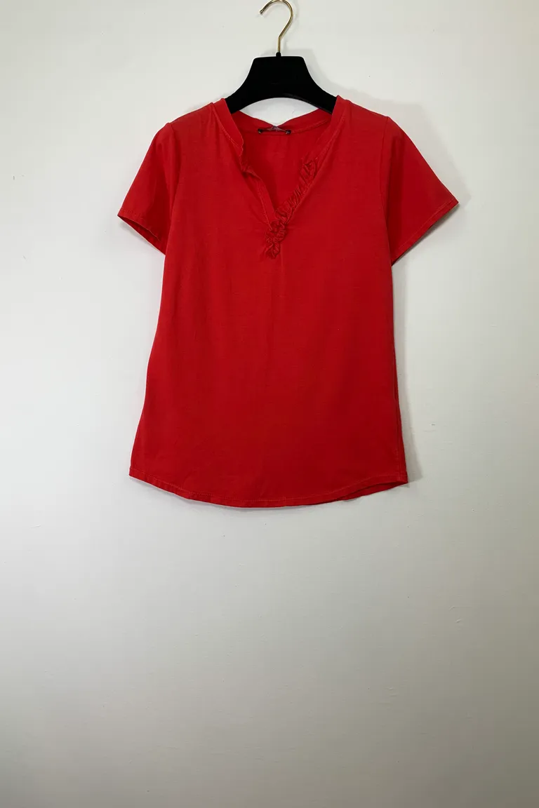 T-shirt scollo a V con rouches