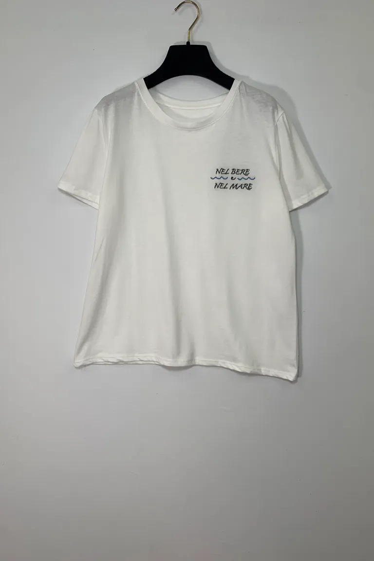 T-shirt con ricamo “ nel bere e nel mare”