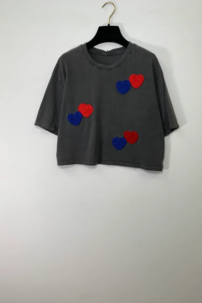 T-shirt stone wash con toppa a cuore