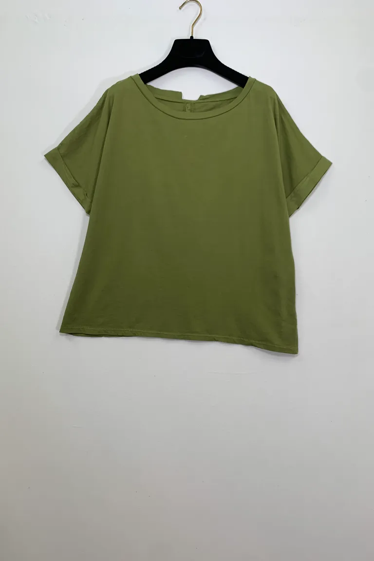 Description T-shirt a scatola con bottoni decorativi lungo la schiena