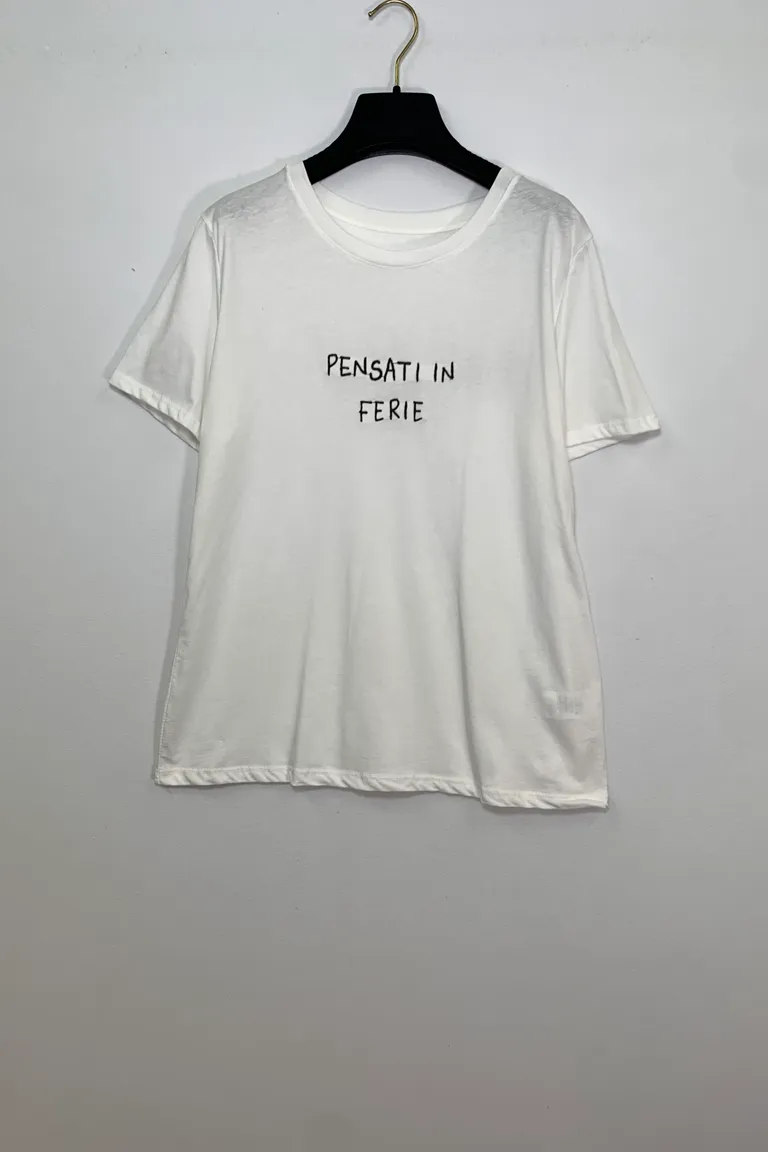 T-shirt con ricamo “pensati in ferie”