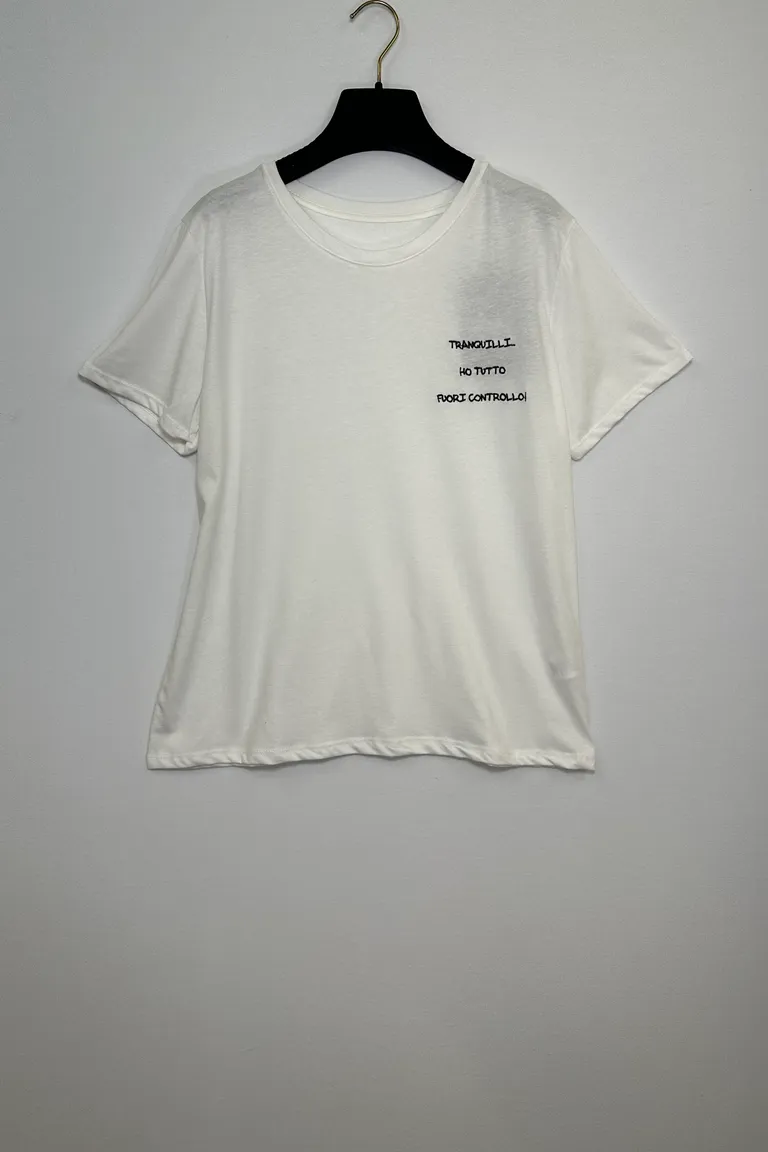 Description T-shirt con ricamo “Tranquilli, ho tutto fuori controllo!”