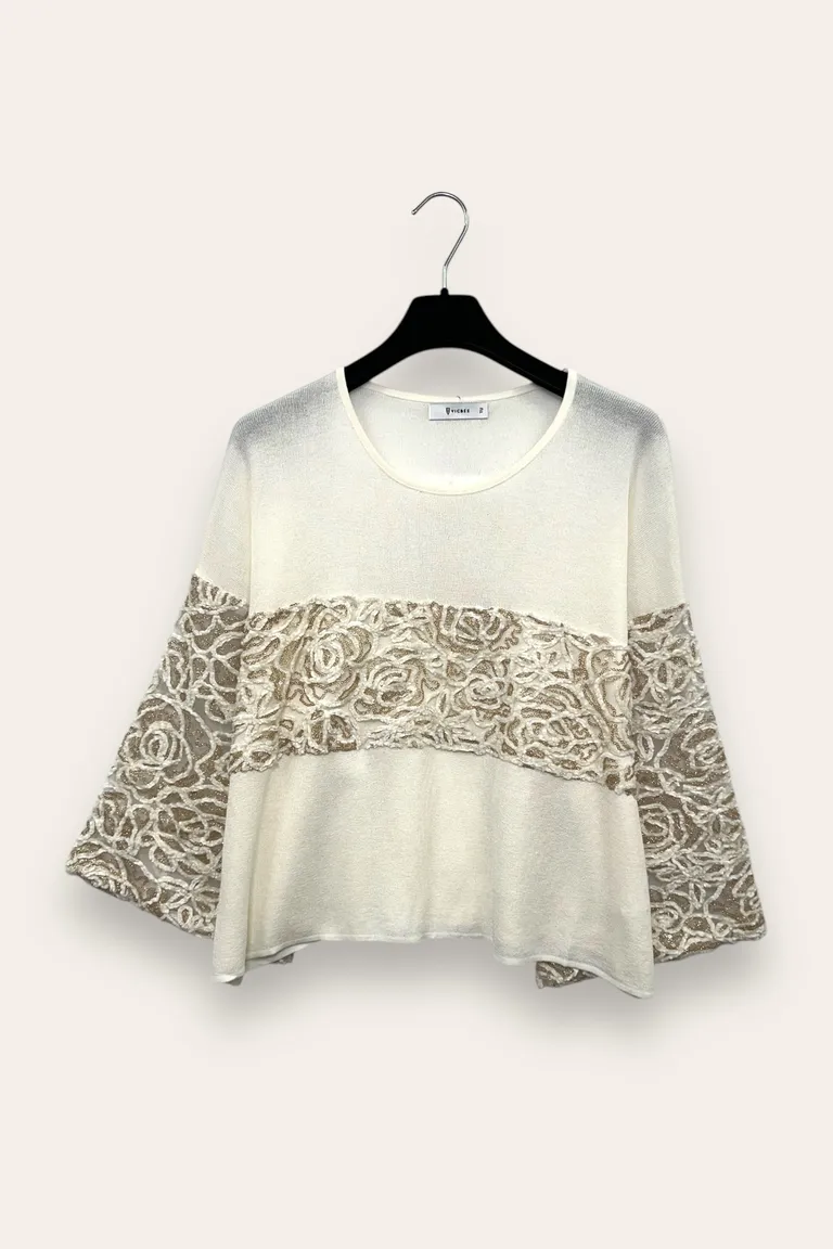Maglietta con lurex e tulle a contrasto