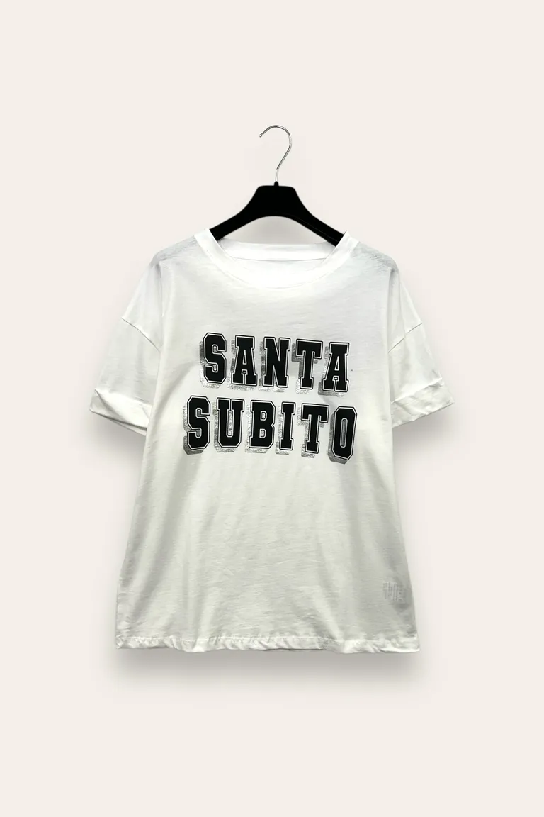 T-shirt con stampa “santa subito”