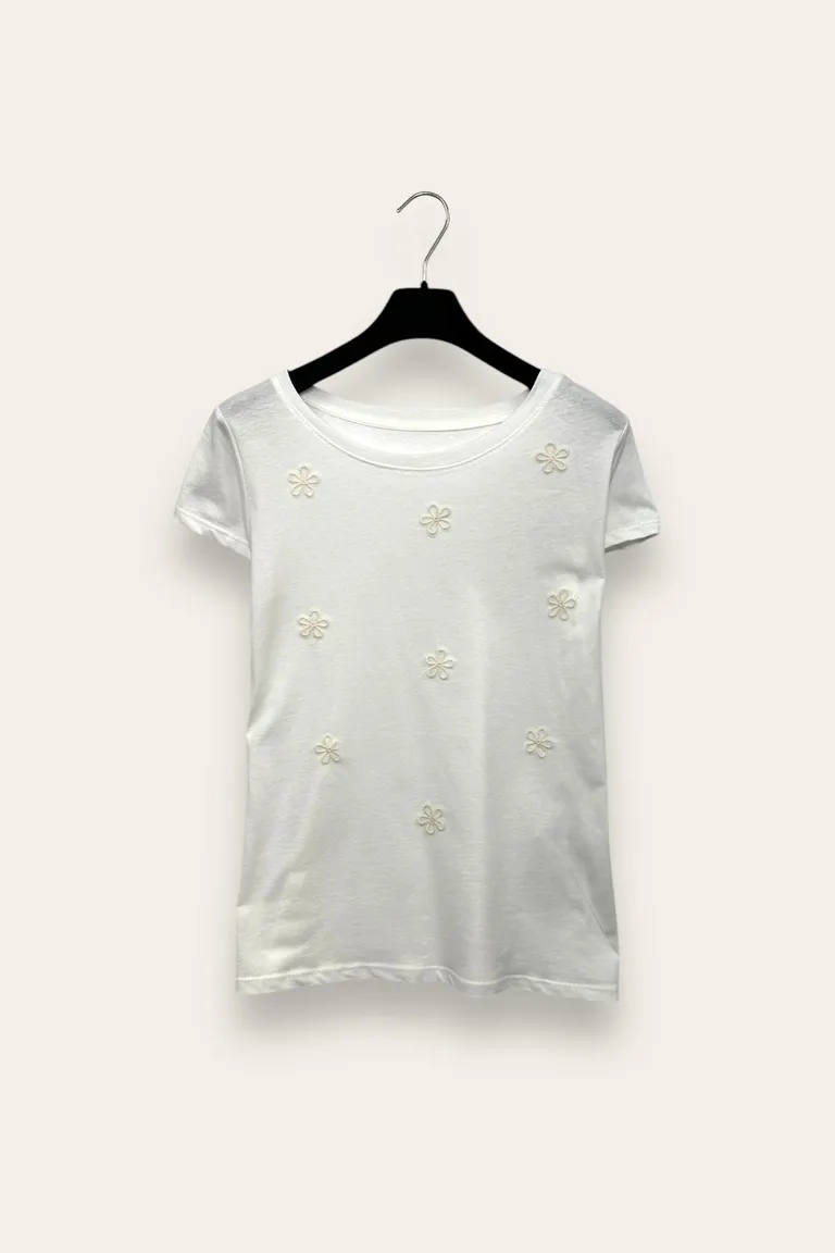 T-shirt con fiori di frange nappine