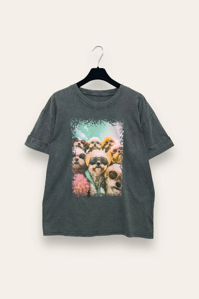 T-shirt stone washed con stampa barboncini