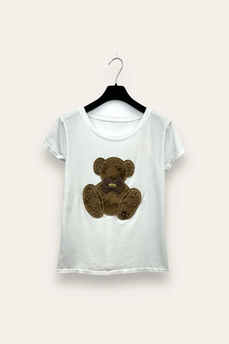 T-shirt orso fiocco all’uncinetto e strass
