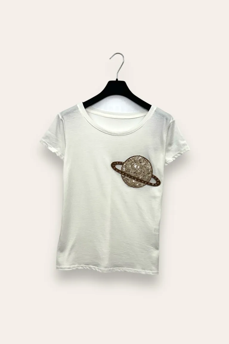 T-shirt Saturno strass e paillettes
