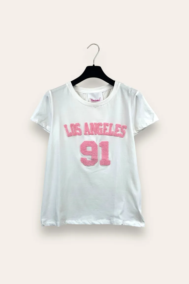 T-shirt con scritta teddy “Los Angeles 91”