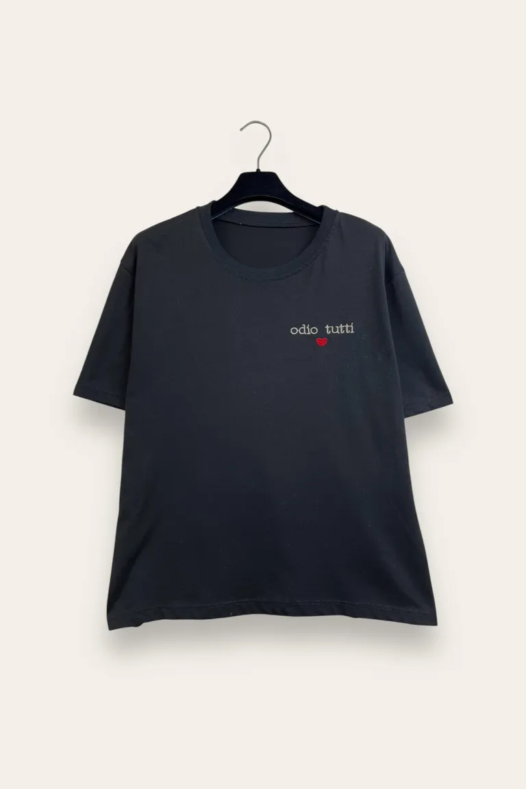 T-shirt con scritta ricamata “Odio tutti”