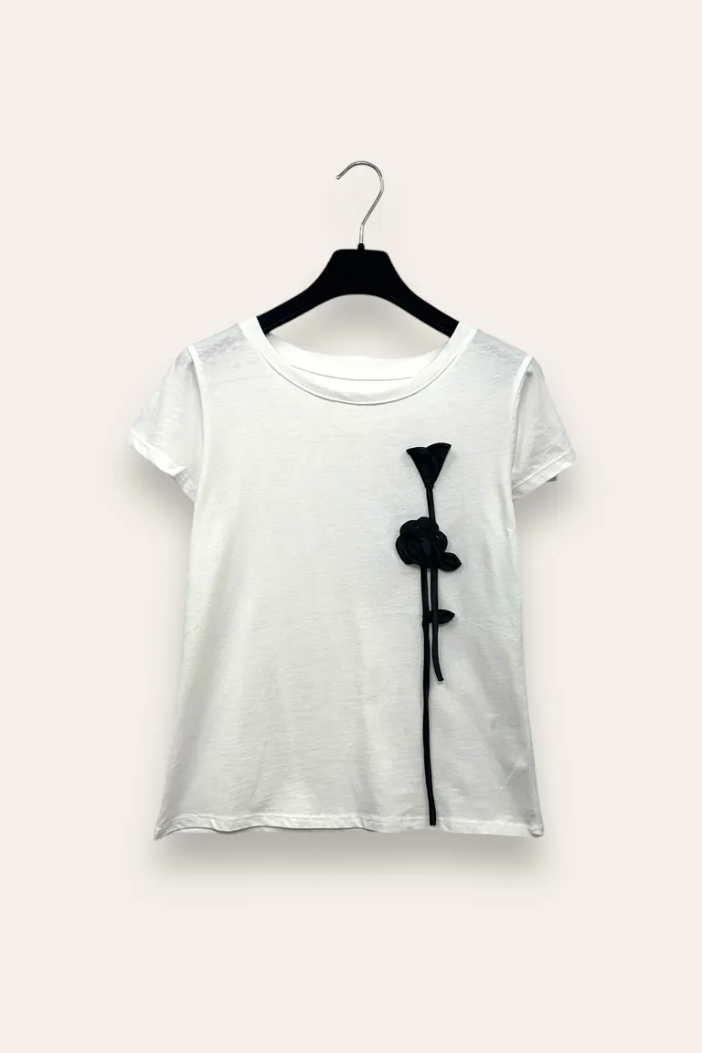 T-shirt con fiore in tulle applicato