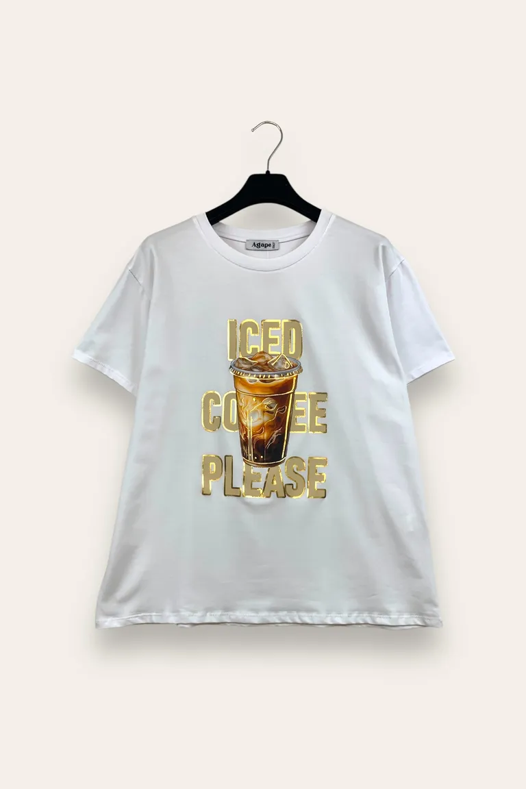 T-shirt con stampa “iced coffe please”