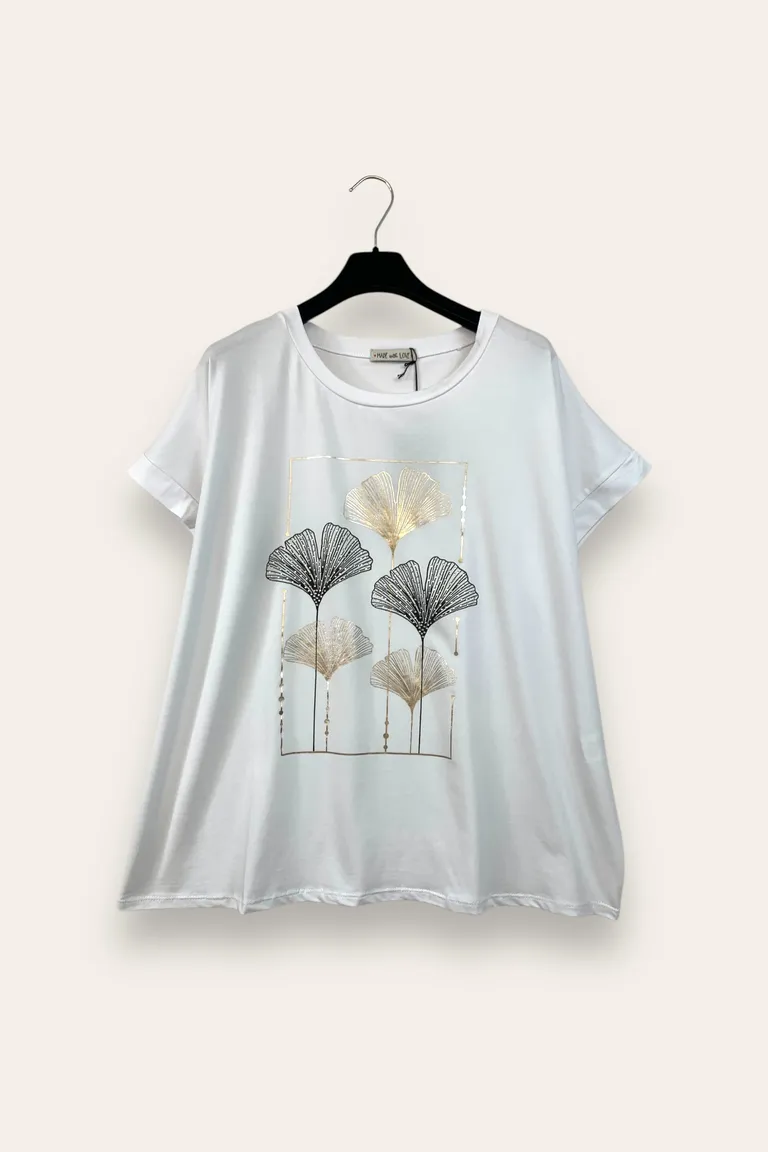 T-shirt over con stampa foglie di Ginkgo