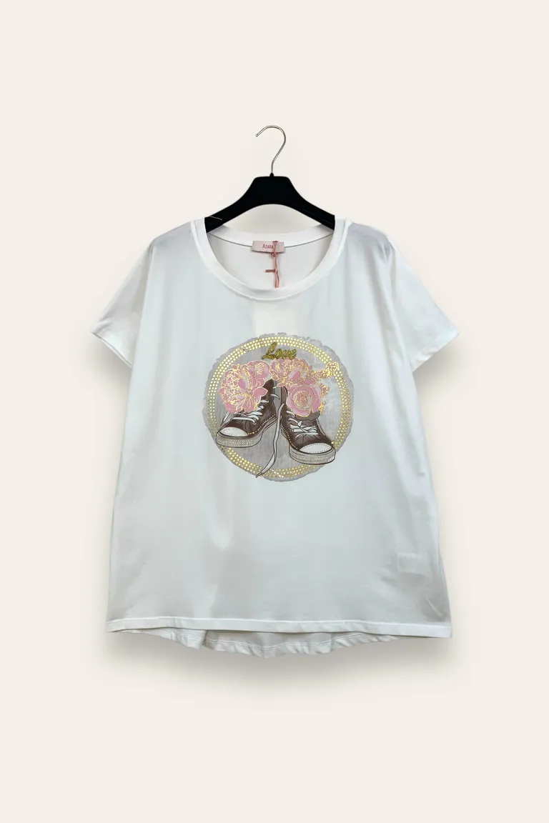 T-shirt con stampa scarpe con fiori