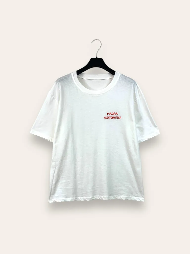 T-shirt con scritta ricamata “ Magra asintomatica ”