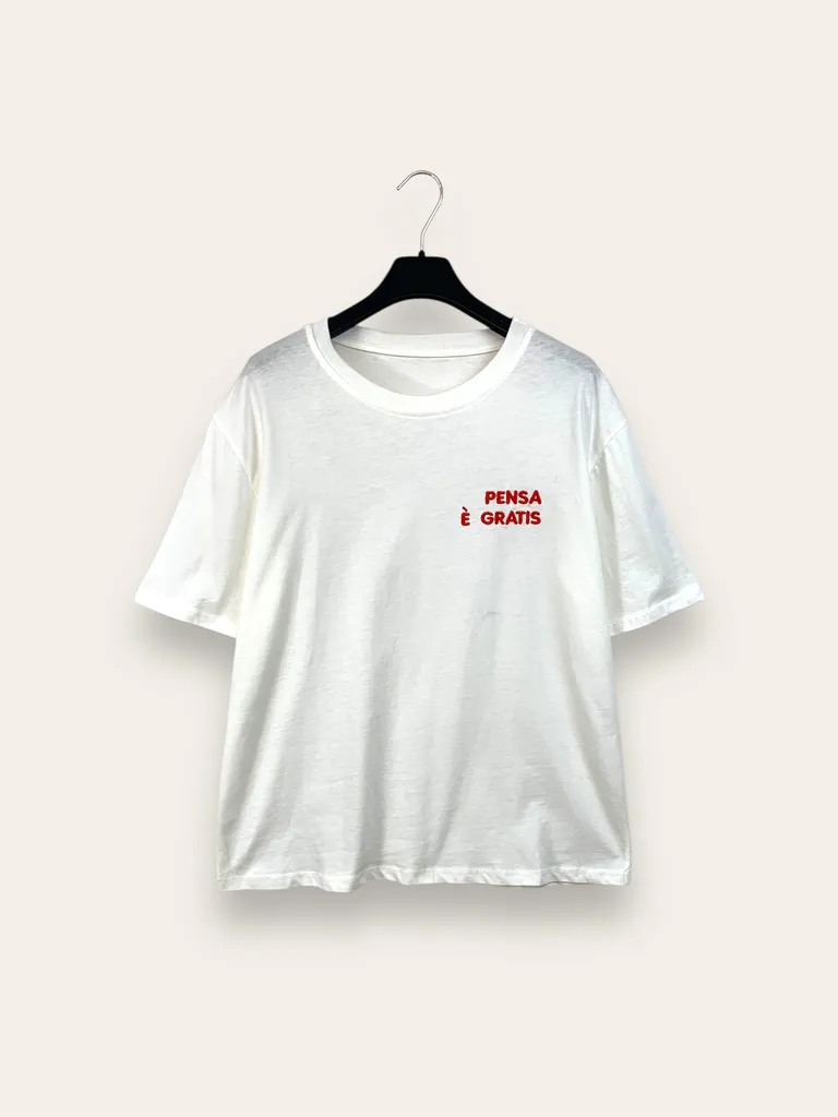 T-shirt con scritta ricamata “ Pensa è gratis ”