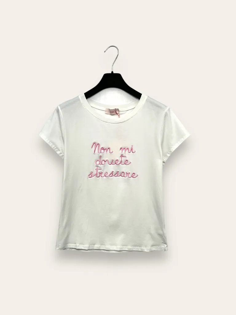 Description T-shirt con scritta ricamata “non mi dovete stressare”