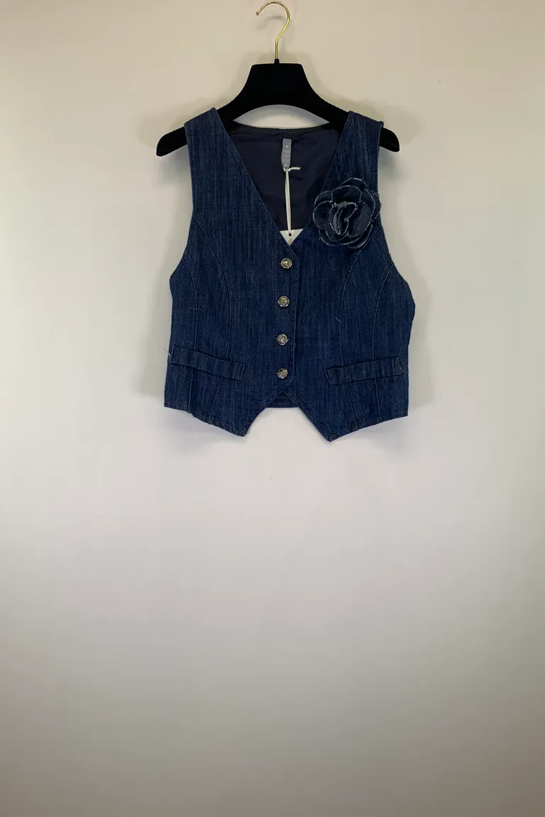 Gilet in denim, foderato con spilla