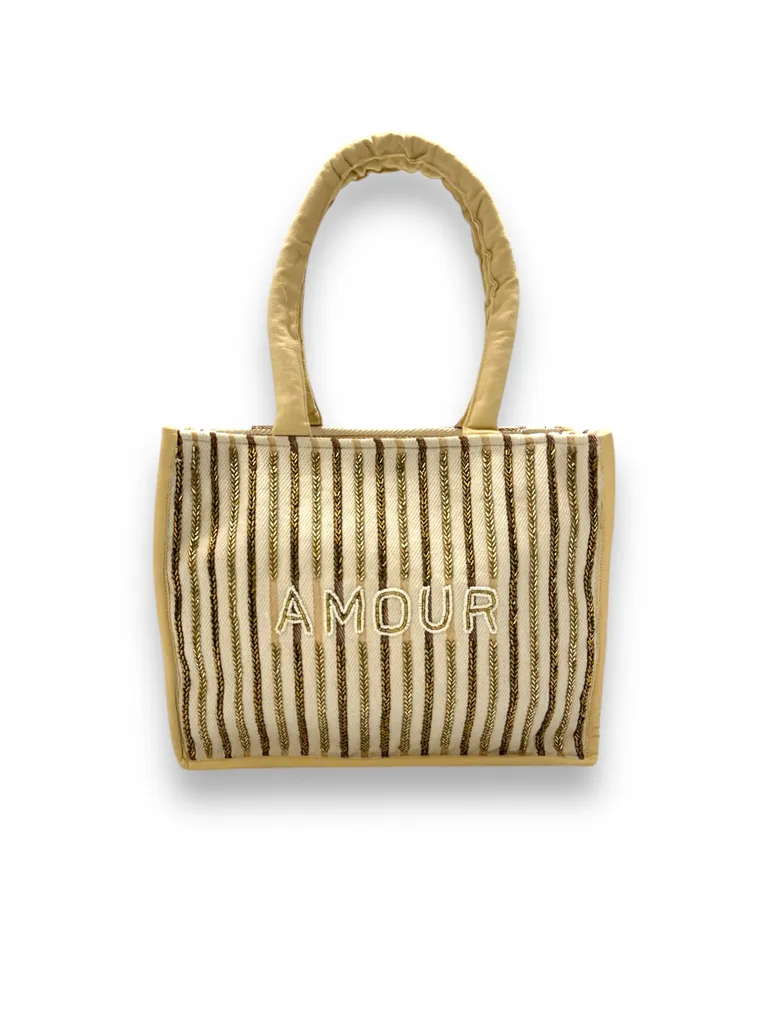 Description Borsa in tela con perline e zip (38x30x13cm)