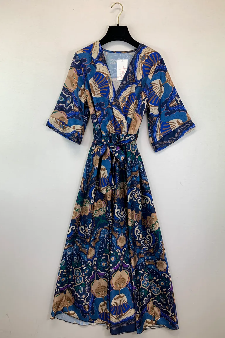 Abito mezza manica in raso, scollo incrociato