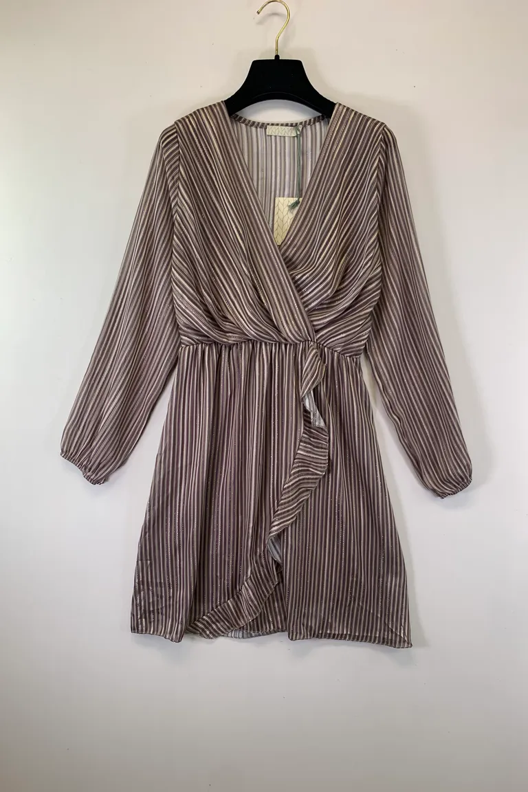 Description Abito in georgette con scollo incrociato, filo in lurex