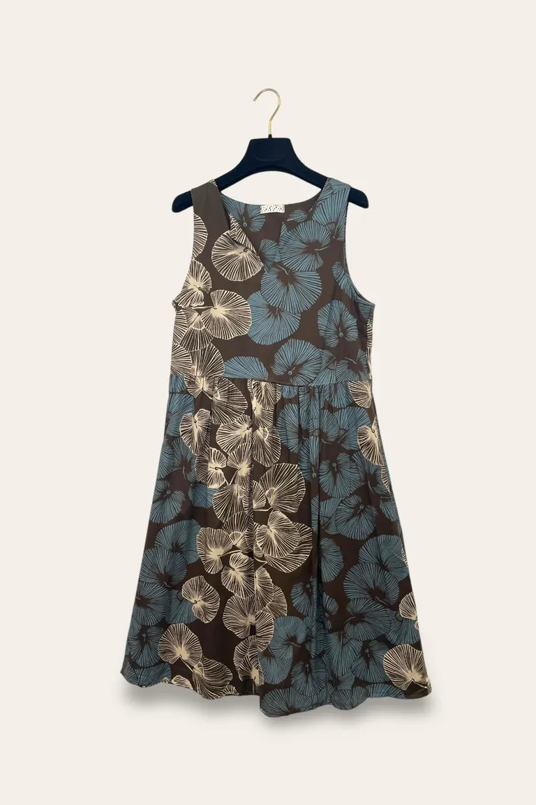 Abito smanicato in fantasia, scollo a V