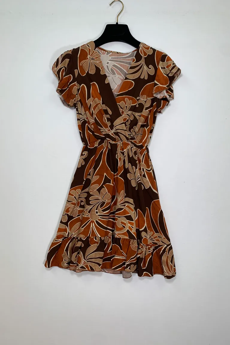 Description Abito mezza manica con scollo incrociato ed elastico in vita