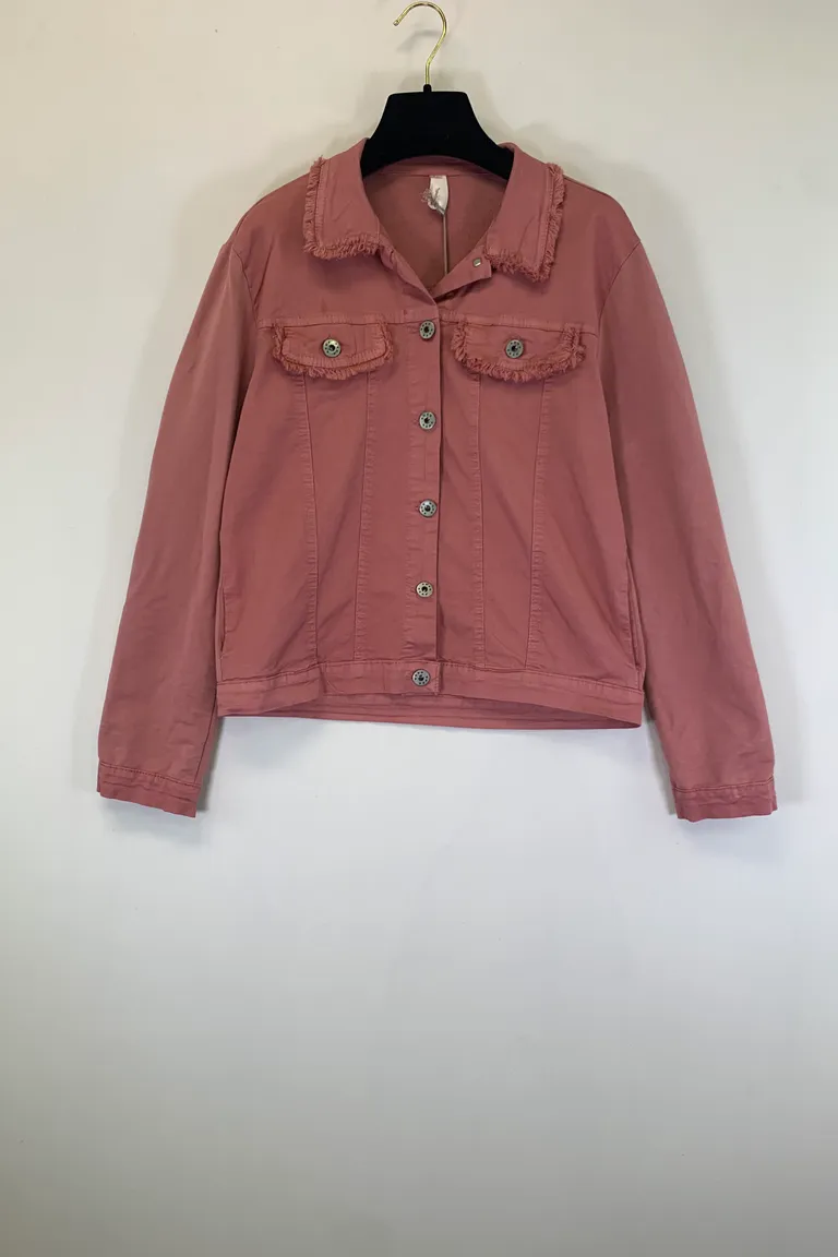 Description Giacca in cotone, frange al colletto e alle tasche
