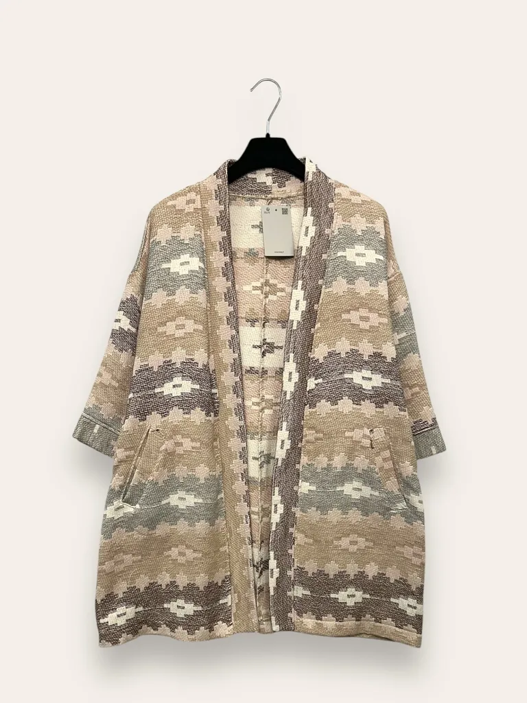 Description Cardigan aperto a trama con motivo geometrico