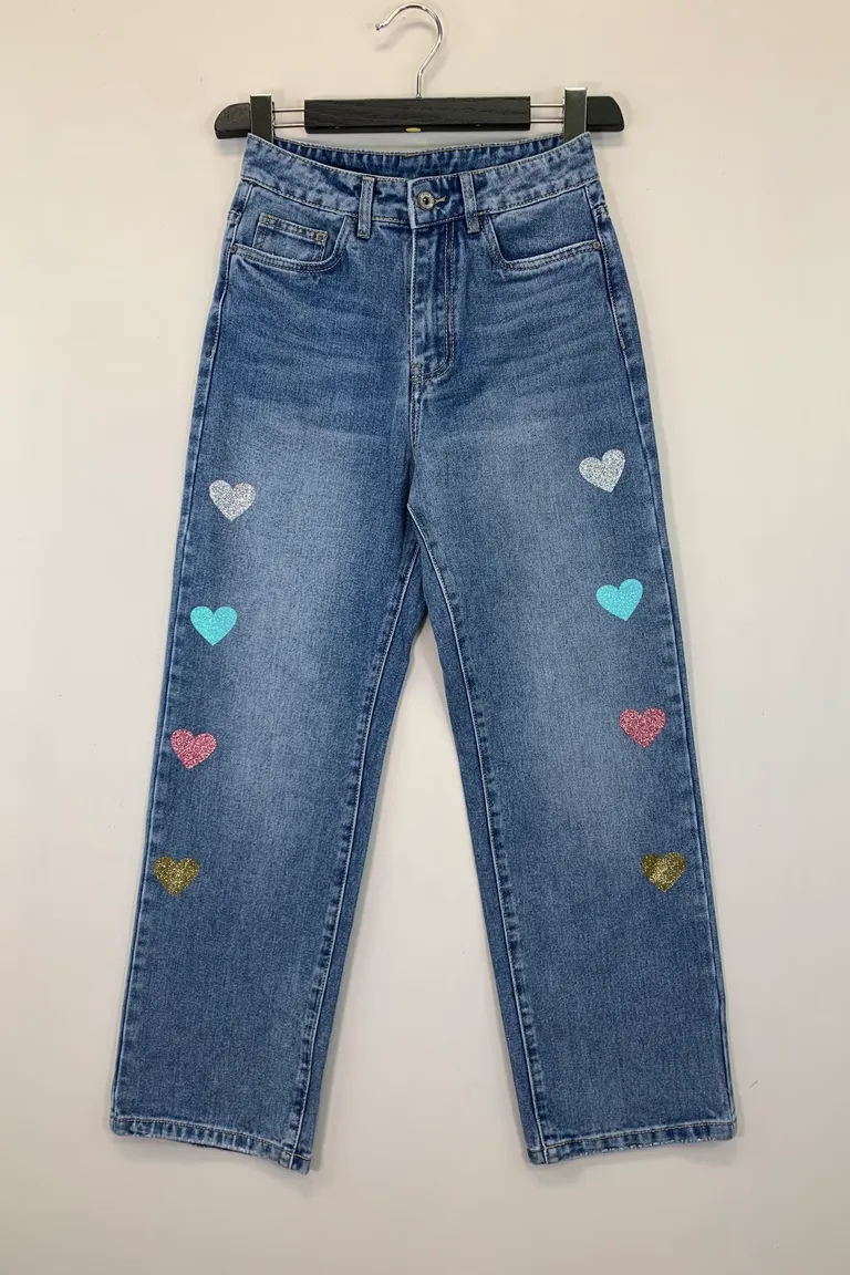 Jeans a palazzo con cuori glitterati