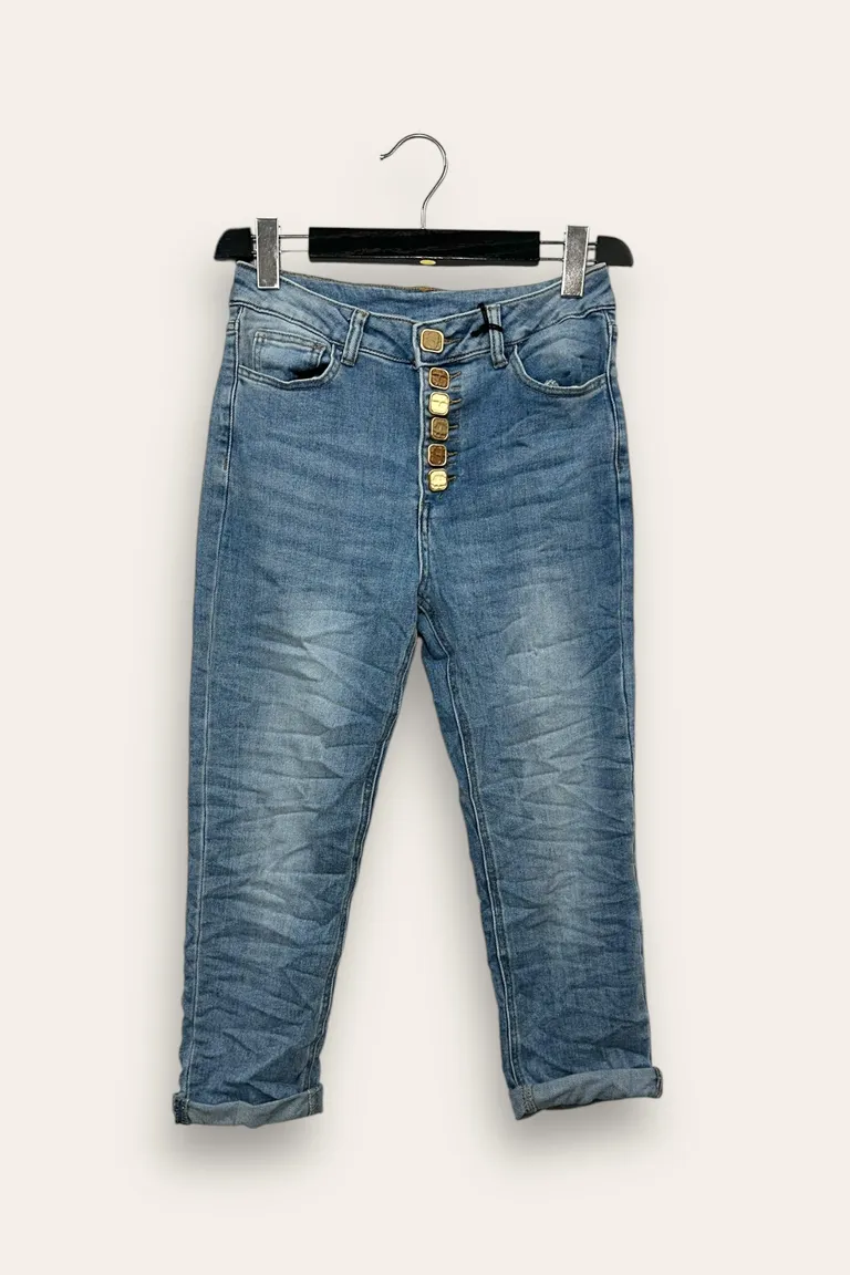 Jeans regular con bottoni gioiello