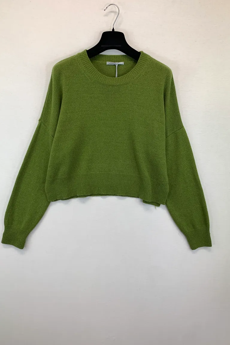 Description Maglia corta misto cashmere, con spacchi ai lati