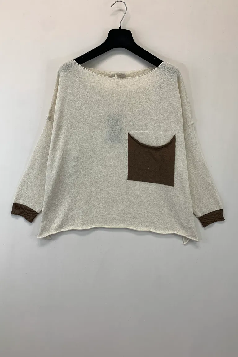 Description Maglia a scatola con spacchetti, taschino e polsini a contrasto