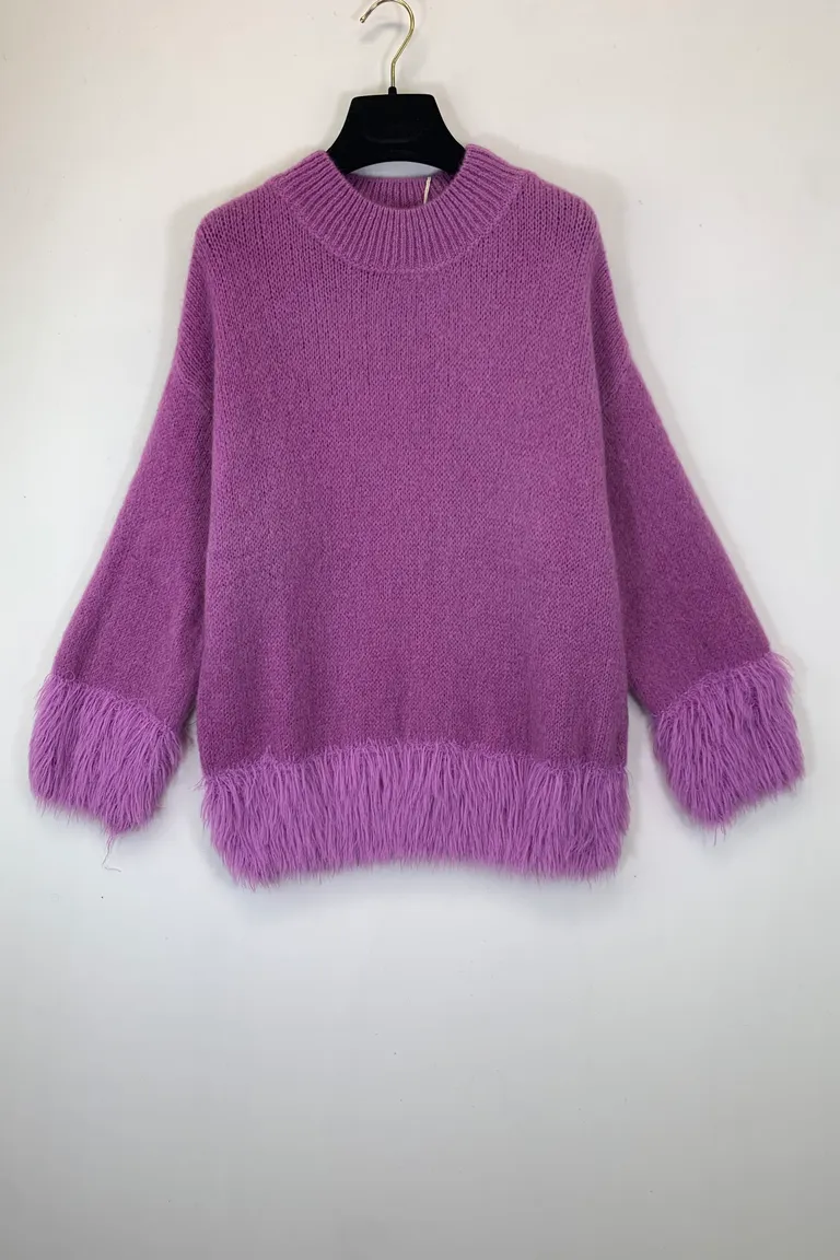 Description Maglia girocollo misto lana mohair, con pelo lungo al fondo