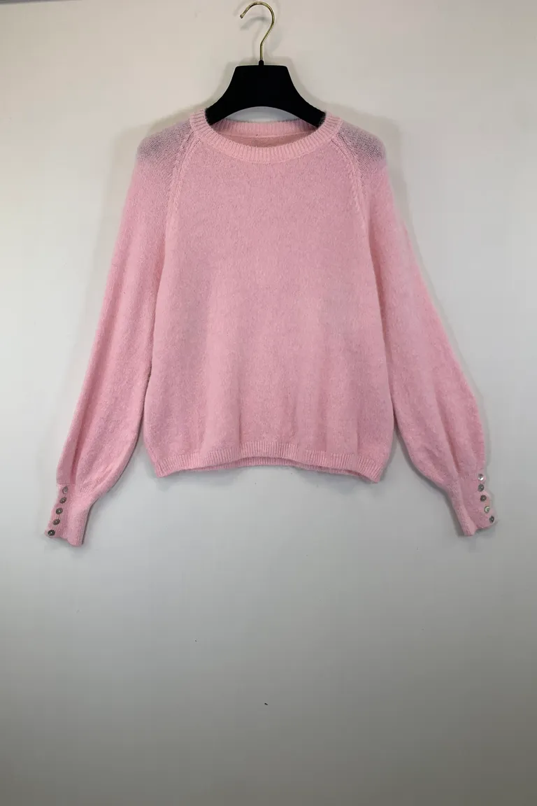 Description Maglia girocollo misto lana alpaca, bottoni ai polsini