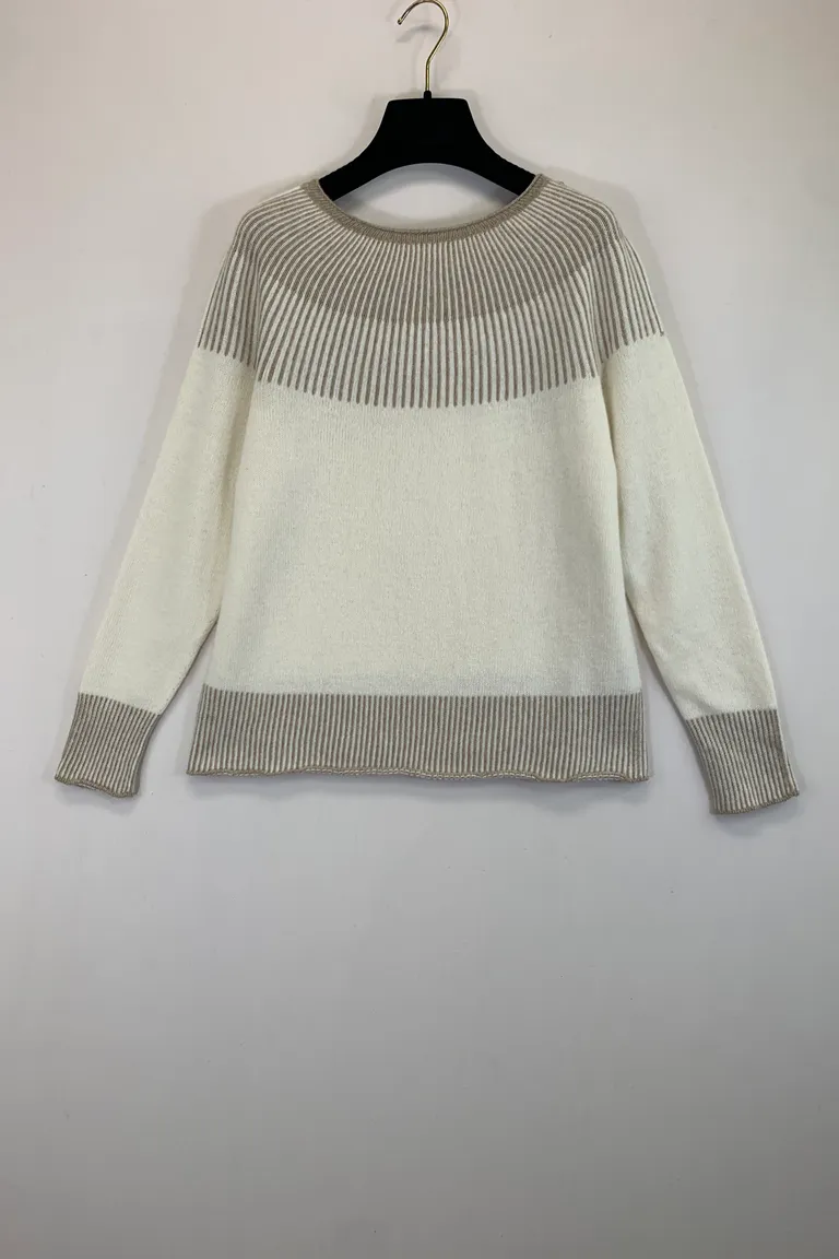 Description Maglia misto cashmere con profilo a righe bicolore