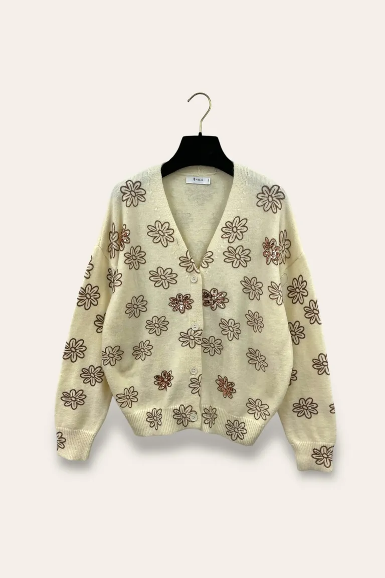 Description Golfino con fiori stampati e paillettes