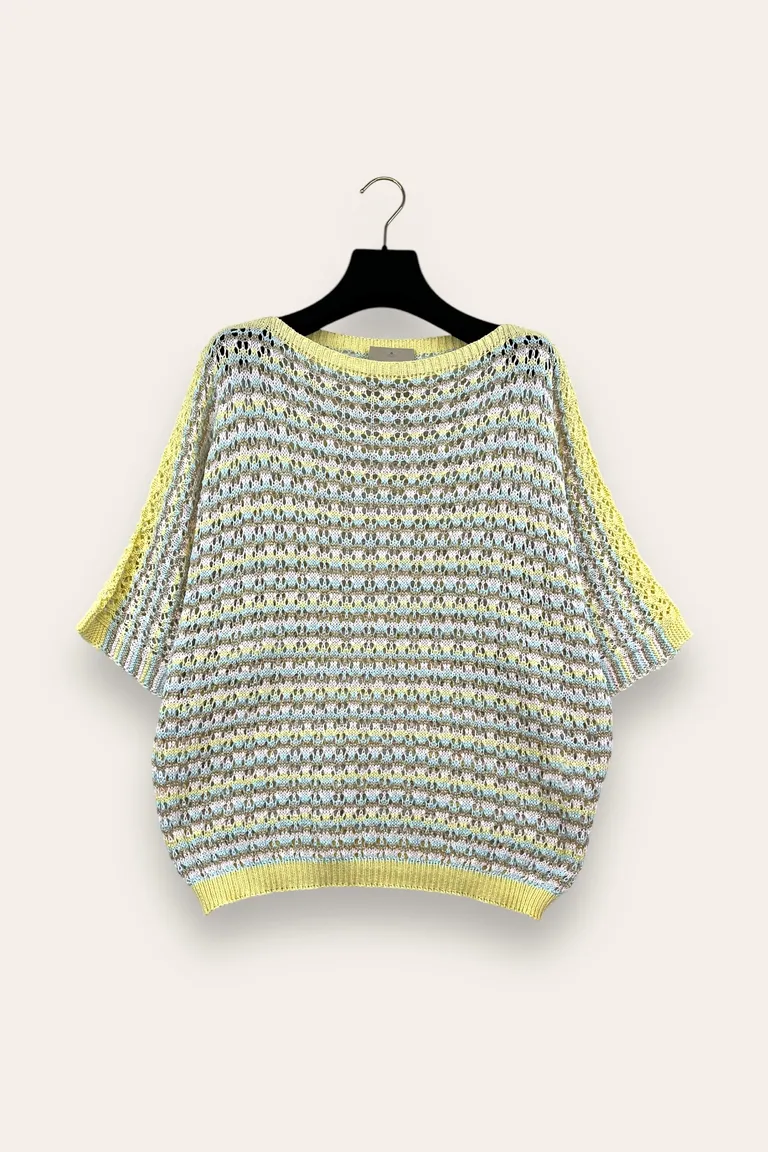 Maglia multicolore traforata a manica corta