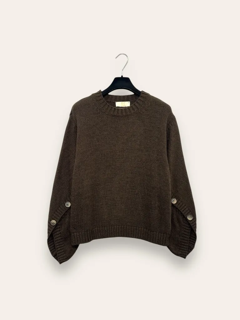 Description Maglia over misto lana alpaca, maniche a palloncino con bottoni