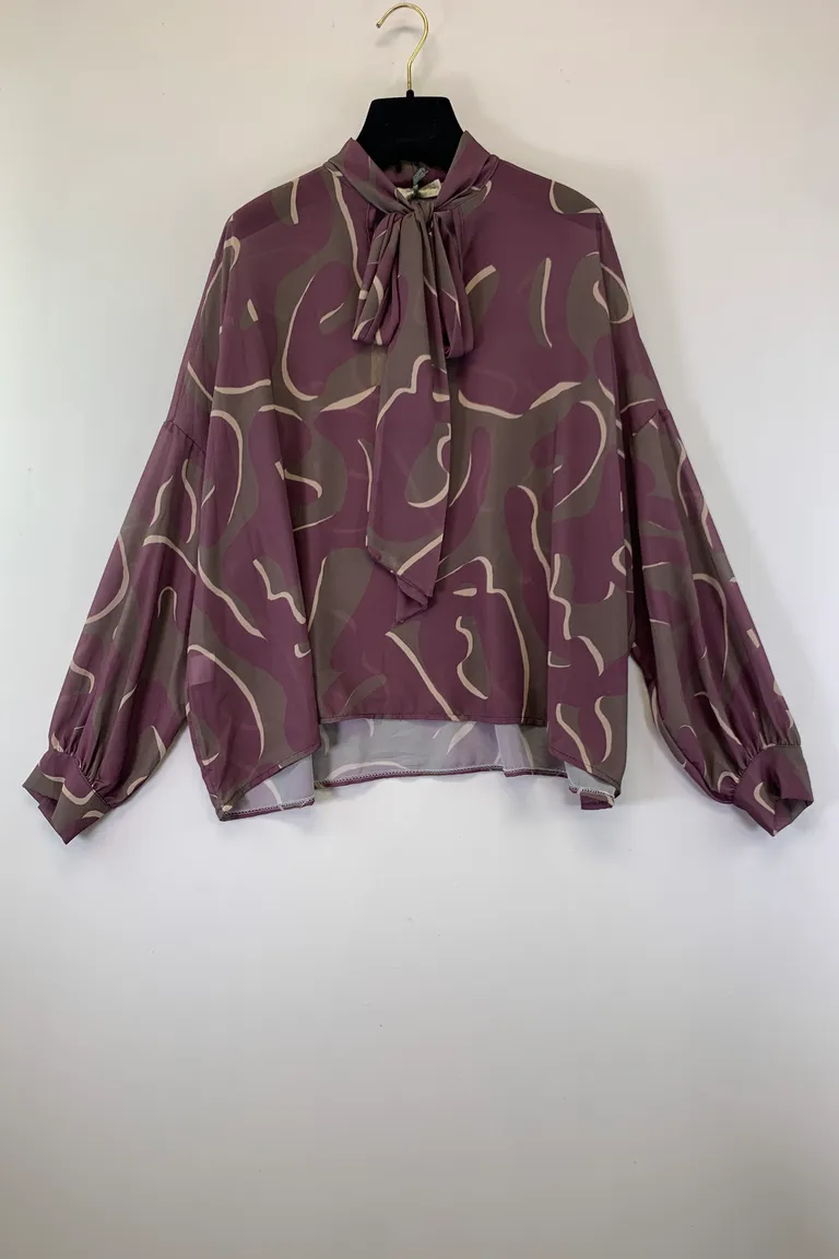 Description Camicia in georgette in fantasia, con fiocco al collo