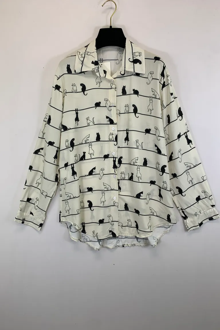 Camicia in viscosa, fantasia gatti