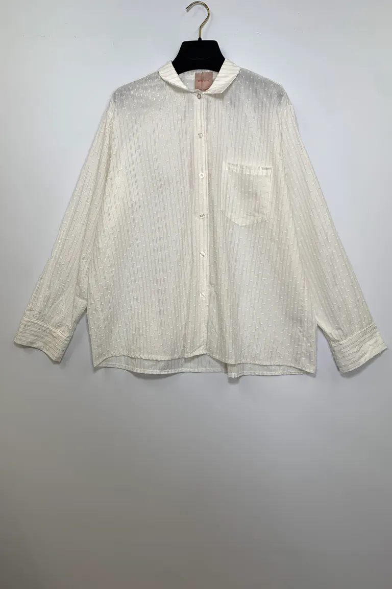 Camicia con plumetis, rigata con lurex