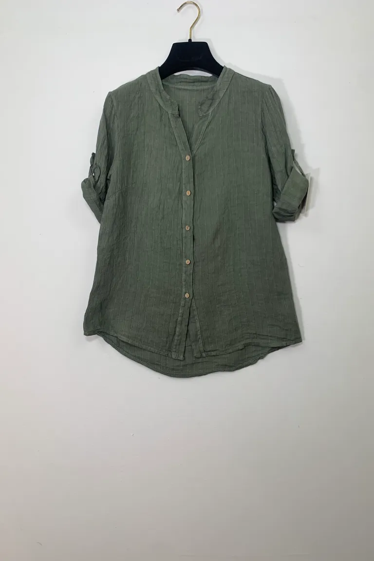 Camicia coreana in lino rigata