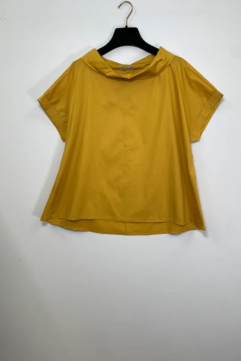 Blusa mezza manica con scollo a ciambella