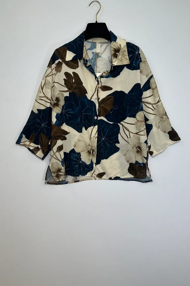 Camicia misto lino in fantasia